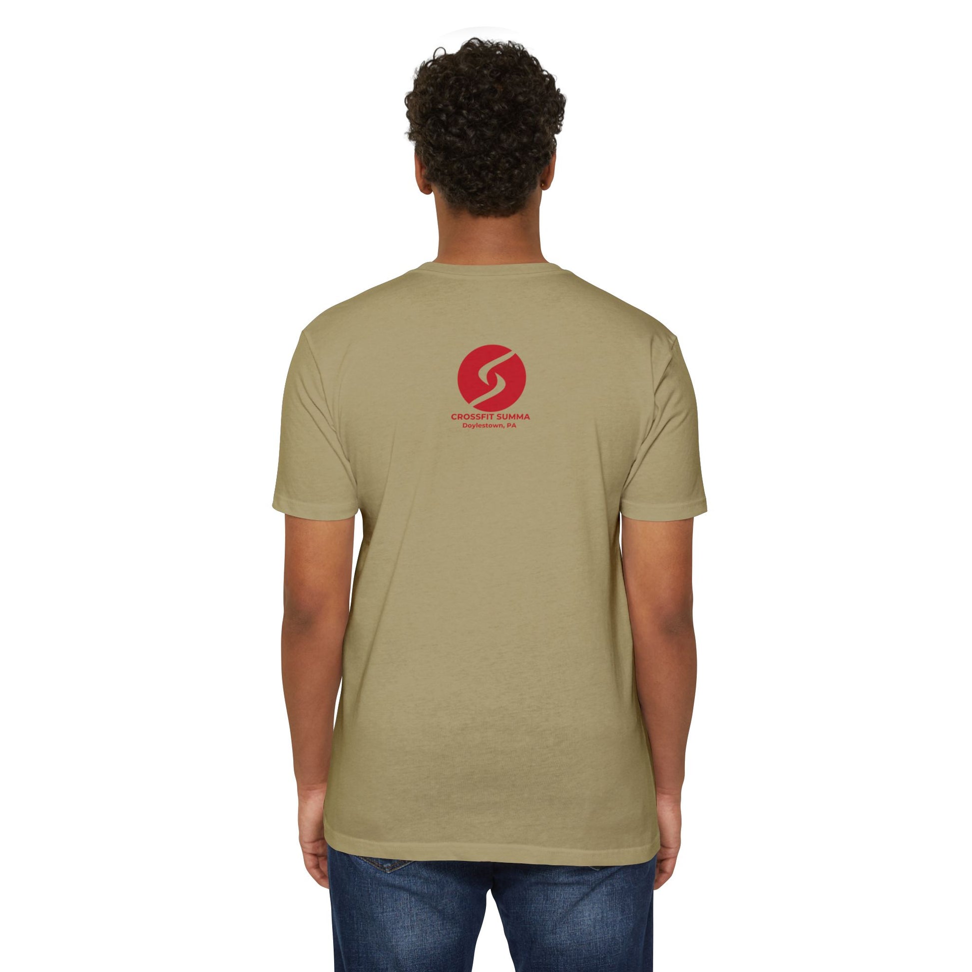 This shirt fits the rhythm of city athletes and community fitness lovers — the ones who know instructors by name, run the same loops, and show up for friends at 6 a.m. It’s meant to be grabbed on quick errands after a workout, pulled on for a recovery walk, or tossed into a gym bag as the go-to top that won’t weigh you down. The muted tone and minimal graphics let the shirt blend into everyday wear while still signaling membership to a local crew.